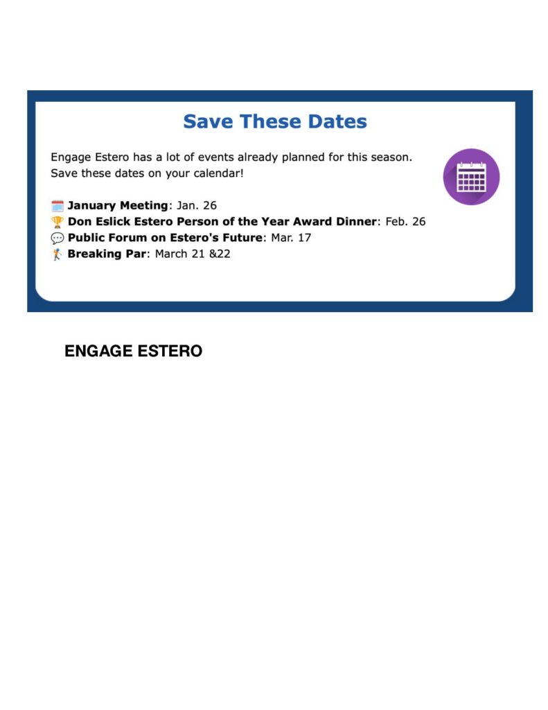 The Engage Estero Board of Trustees and the Executive Management Team wish you all a Happy, Healthy, and Enjoyable 2026.