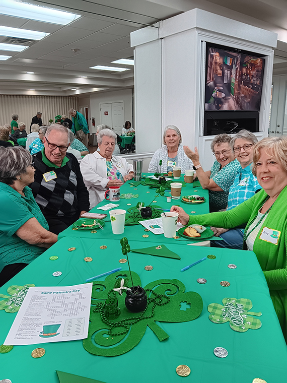 Approximately 33+ guests gathered for a delightful St. Patrick’s Day Coffee, Tea & Chat, enjoying warm beverages and a wonderful array of small bites, generously donated by our talented and thoughtful community members.